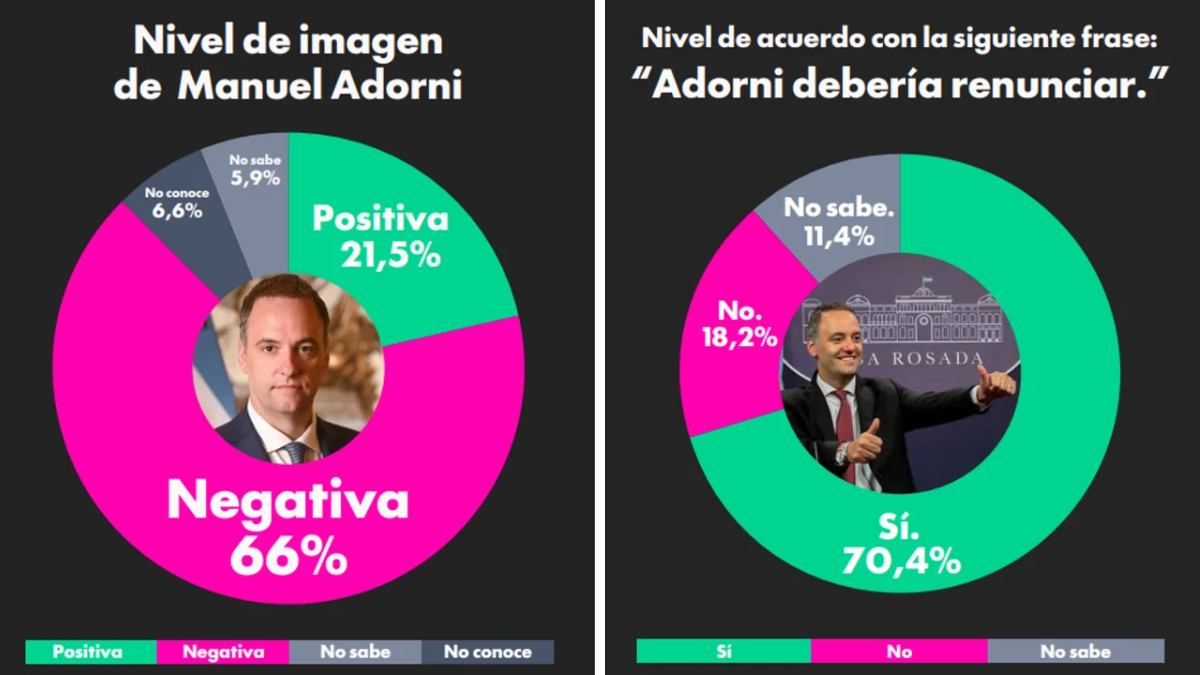 Una encuesta revela que el 66% tiene imagen negativa de Manuel Adorni y el 70% cree que debería renunciar tras los escándalos.