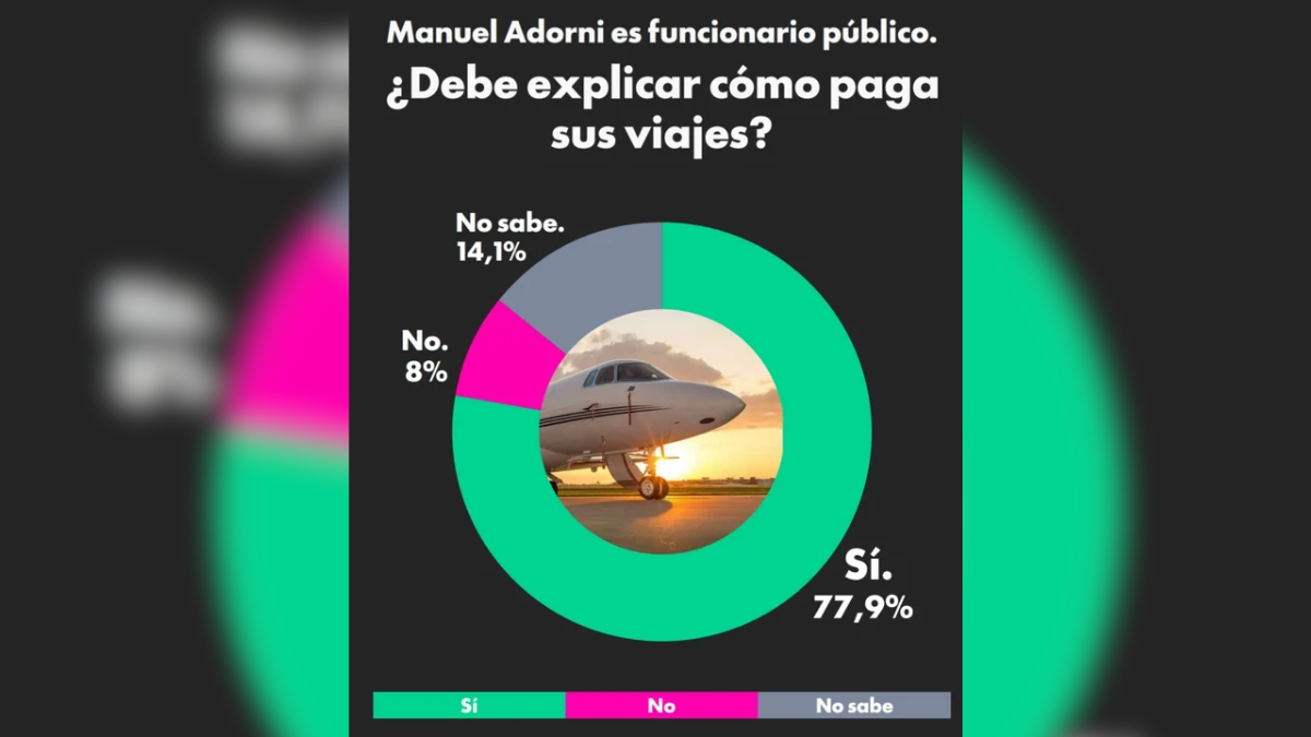 Otro dato clave del relevamiento: el 77,9% de los encuestados considera que Adorni debe explicar cómo financia sus viajes.